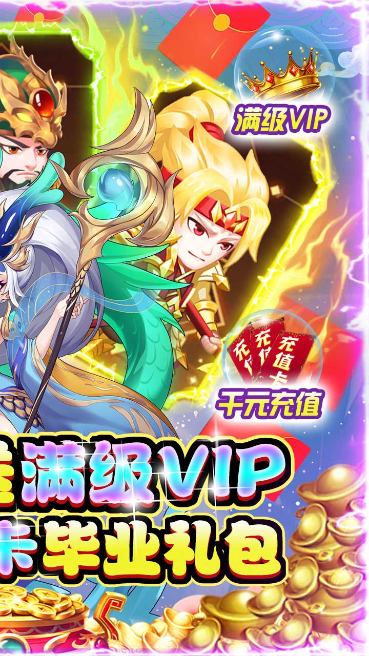 这是一款休闲的放置卡牌策略游戏。游戏中可以收集多位武将,过关斩将怒斩绝世名将,扬名天下。传奇战场,挥师百万,与群雄争锋。不同武将间的不同技能之间组合产生的化学反应,还有5种相生相克的神兽阵法,再加上数百种装备符文选择更是花式烧脑,自由打造自己的专属战队!
